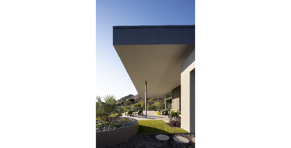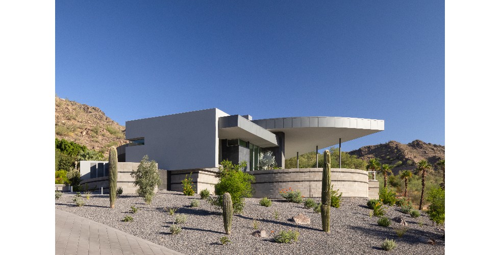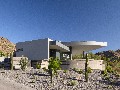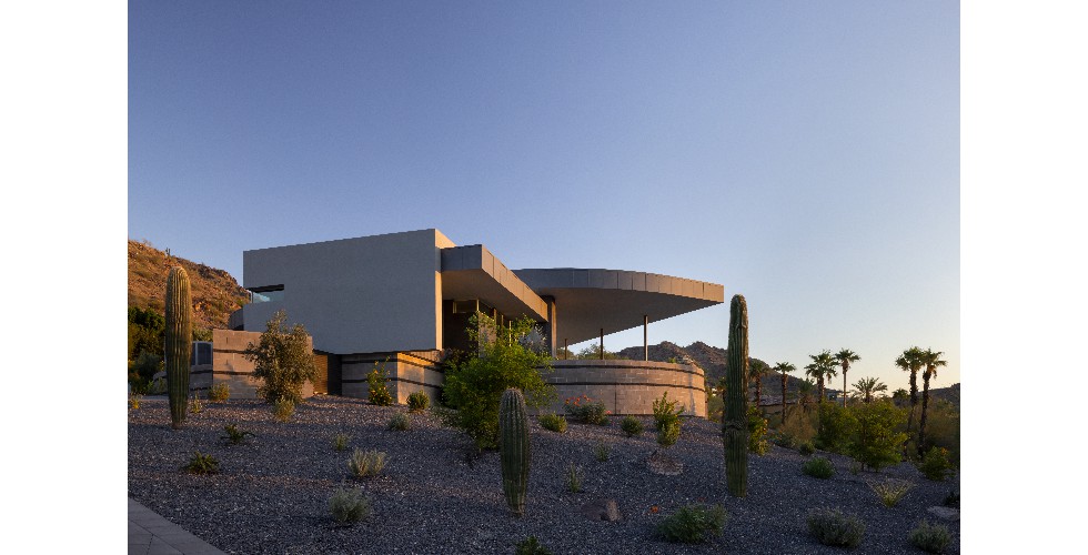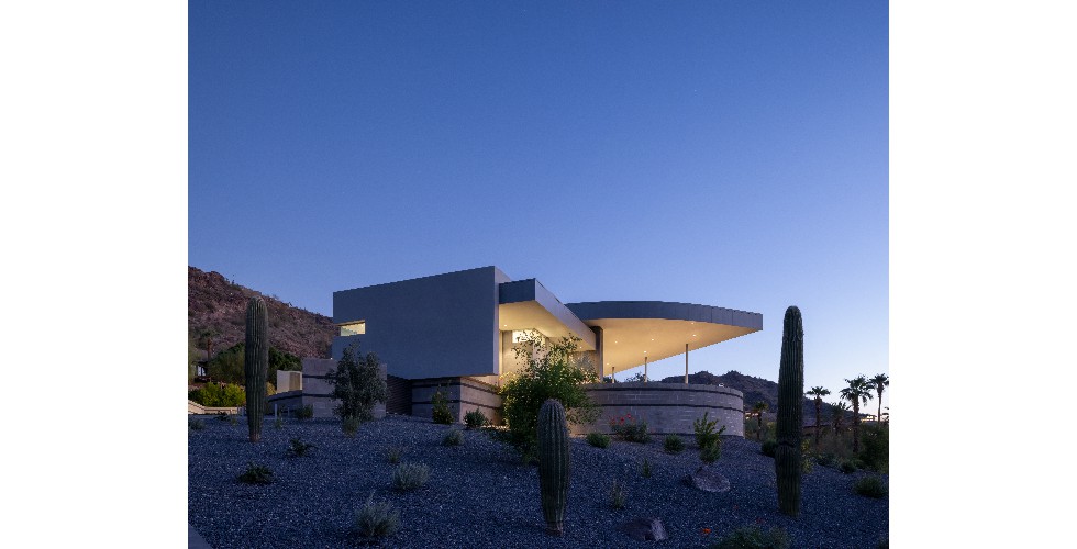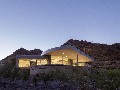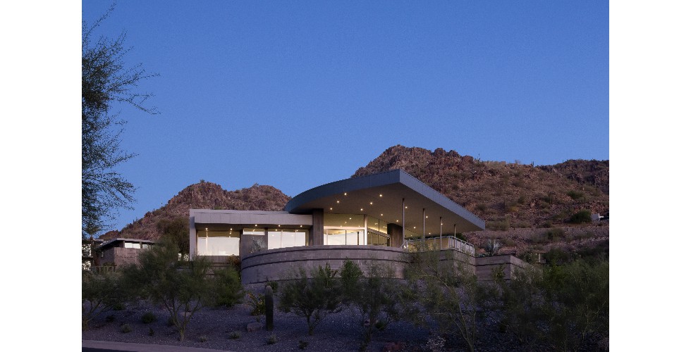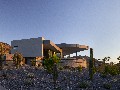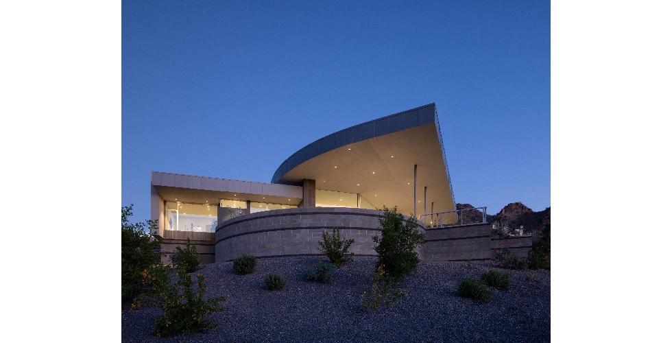 The residence seems to float out of a rocky outcropping with a sturdy block base and contours that are solid and enticing.