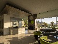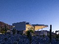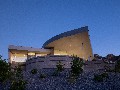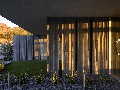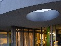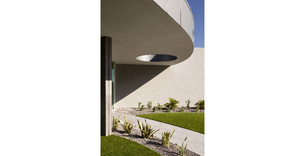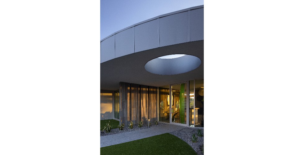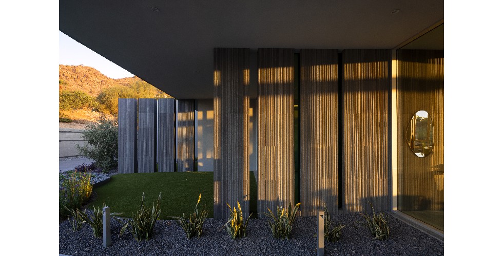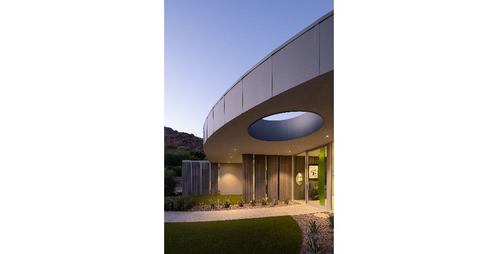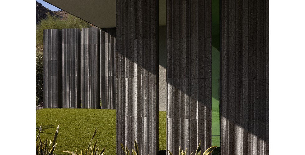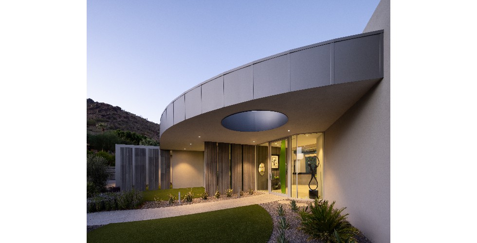The basalt clad column walls stand like art itself and beckon you to the metal clad oculus that spotlights the stunning entry.