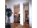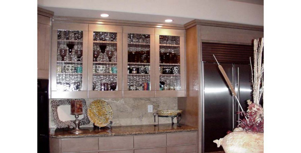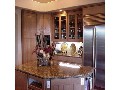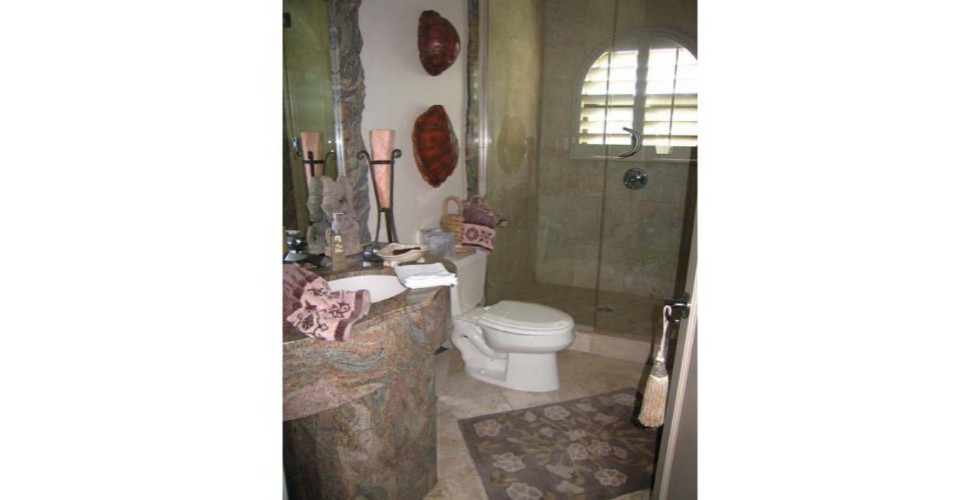 The interior architecture of this residence is modern European. Stone floors inlaid with wood, modern ceiling treatments and lighting, contemporary stained glass doors, rustic stone details, exotic stone tops and Italian glass tiles are integrated tastefully and seamlessly. The mix of countertops and cabinet finishes in the kitchen is rich and clean and the huge island sits atop a stone base. This home also has a children’s wing with its’ own study room/library, a home office and exercise room.