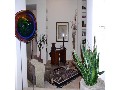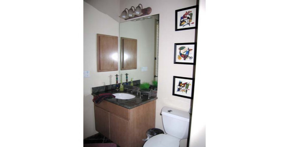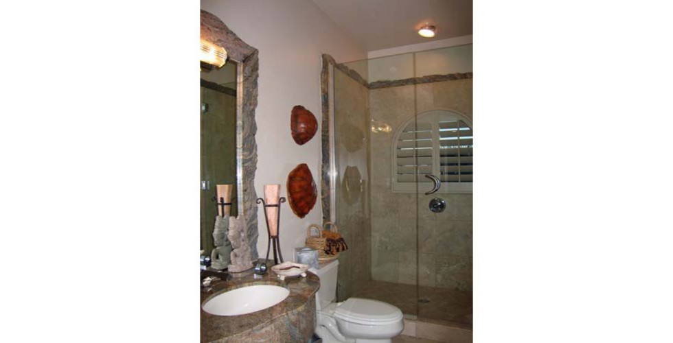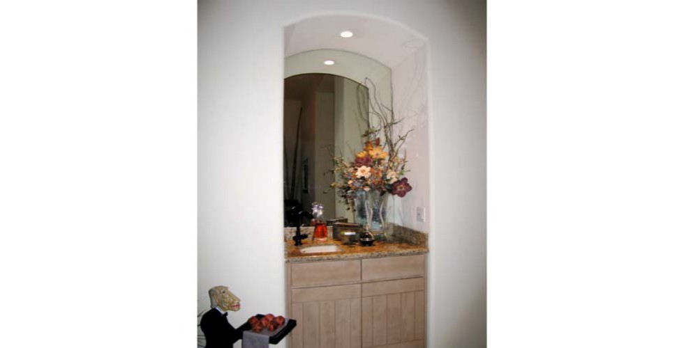 This California mission style home, with it’s clean, simple lines, sits at the end of a cul-de-sac, overlooking the golf course with extraordinary views of Red Mountain. The shallow entry was designed to create a spectacular entry into a foyer that showcases a view of the golf course and the mountain. The deep interior walls create dramatic window niches in the mission revival gallery hallway. The kitchen cabinets were chinked and beat with a chain to give them character. This residence has an air-conditioned wood working shop, art room and private guest room.